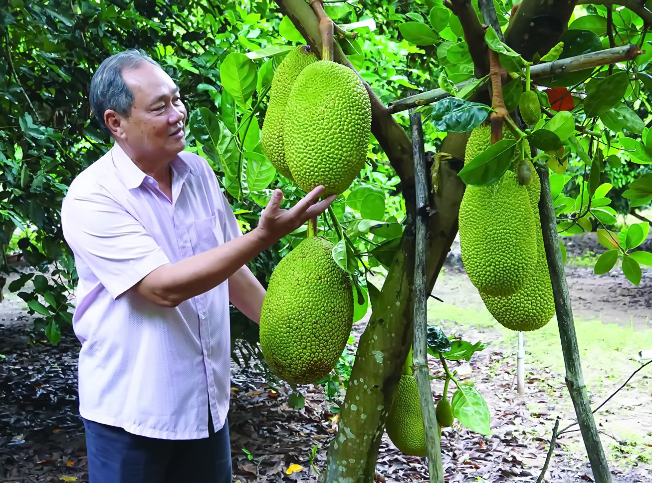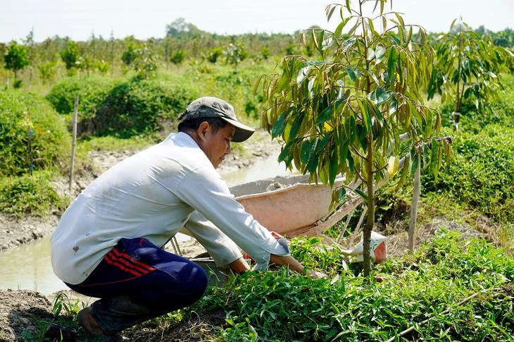 Vườn chú trồng SR6 và musang king. Trước giờ, chú làm lúa không biết cách chăm sóc cây ăn trái. Thấy sầu riêng trồng cũng khó nhưng không biết hỏi ai.